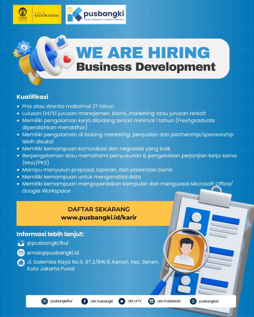• Memiliki pengalaman di bidang marketing, penjualan dan partnership/sponsorship lebih disukai
